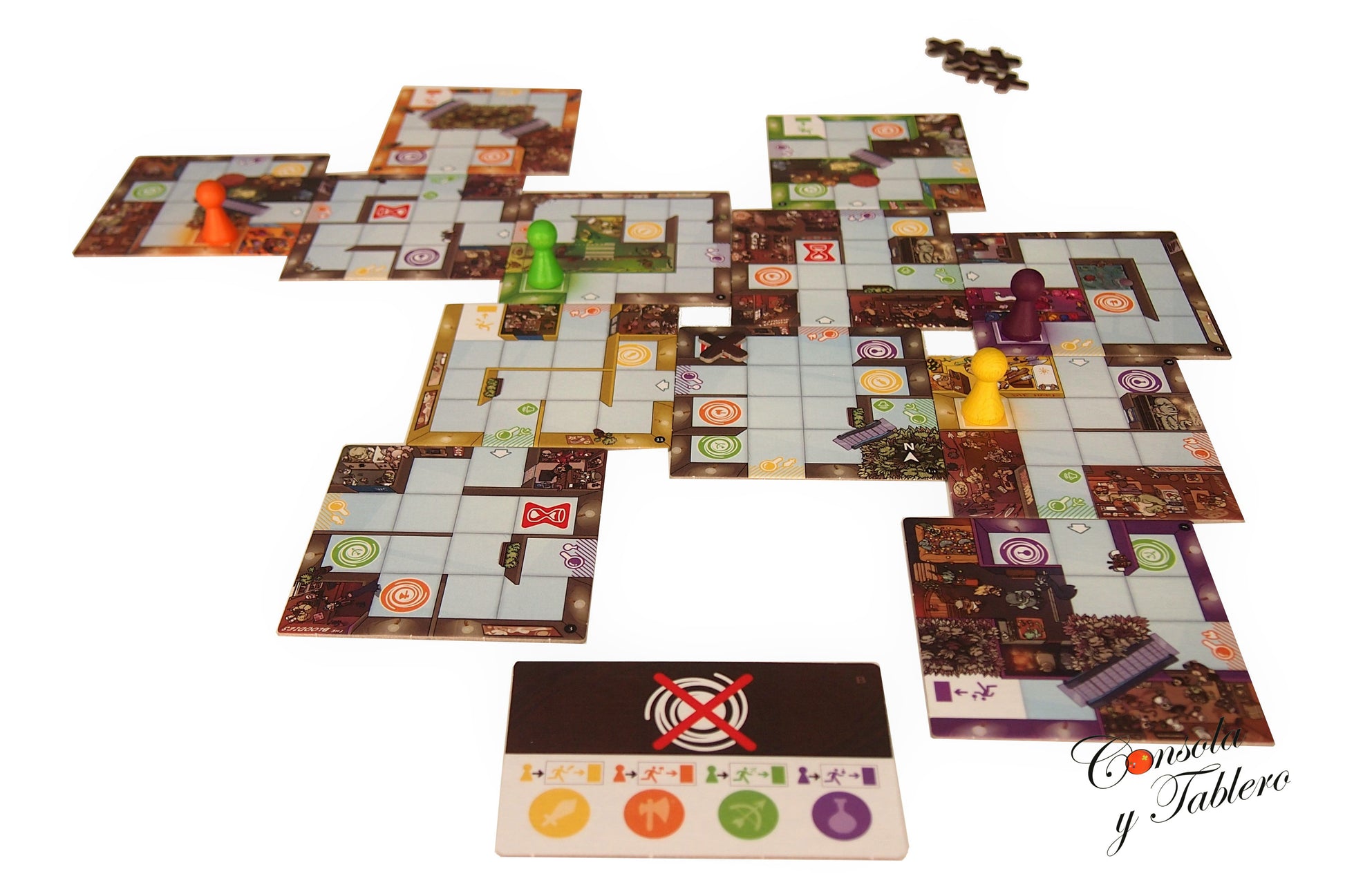 各プレイヤーには特定のアクションタイルが割り当てられ、そのアクションのみを実行できます。例えば、「北への移動」「階段の使用」「新しいタイルの追加」などの特定のアクションを担当します。