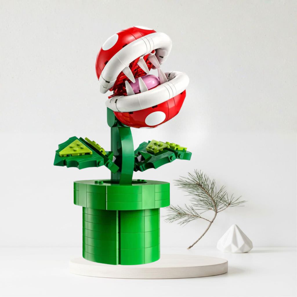 緑の土管からニョキッと顔を出す、あの象徴的なシルエット。鋭い歯や唇の質感まで、レゴブロックで見事に表現されています。